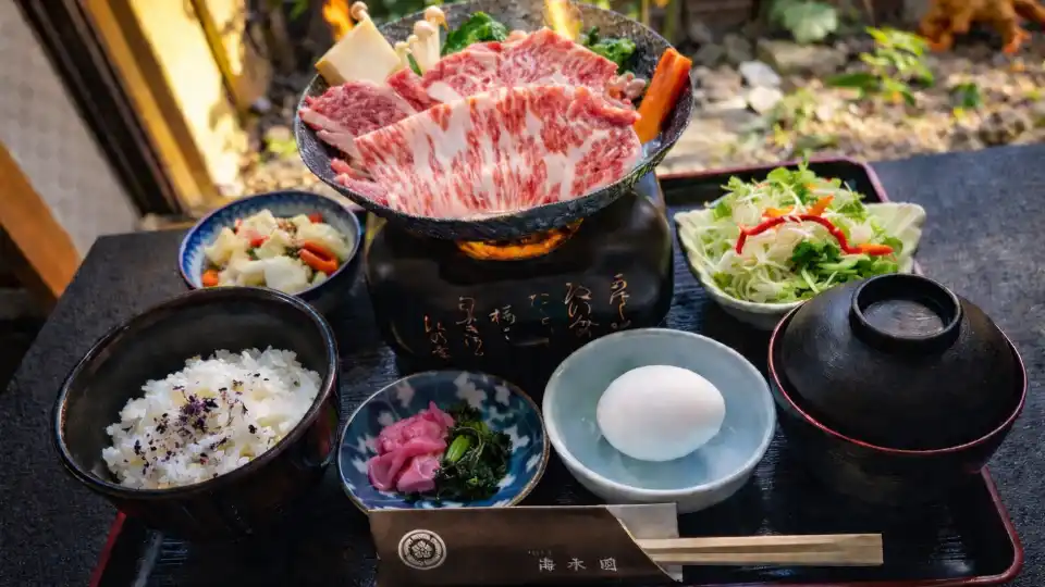 昼食は、きめ細かな霜降りと深い旨みが魅力の近江牛を、贅沢なすき焼きを堪能♪